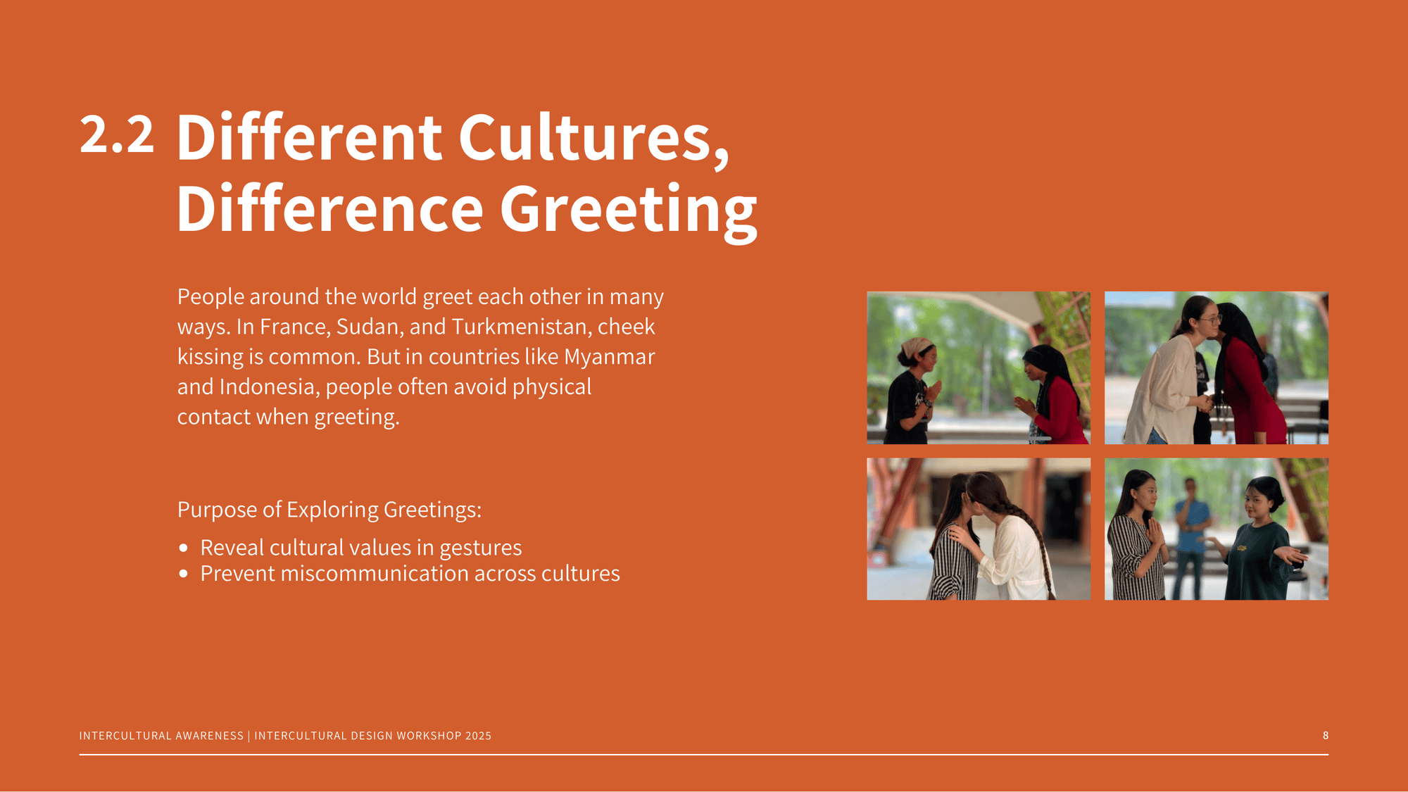 A simple greeting can build trust—or create awkward moments. Cheek kissing feels natural in some cultures and uncomfortable in others. This project explores how greetings differ worldwide, helping us navigate cultural do’s and don’ts with awareness, respect, and ease. more